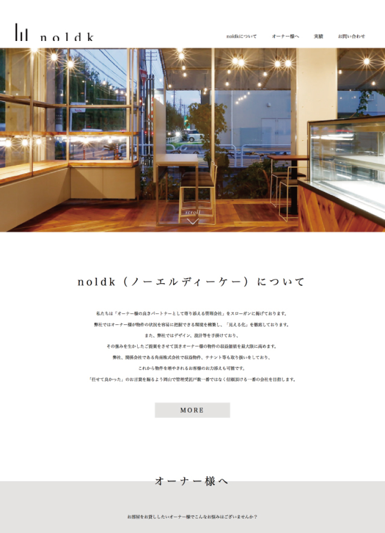 不動産管理業、リノベーション事業などを行うnoldk(ノーエルディーケー)のウェブサイトデザインを担当させていただきました。 詳細はこちら
