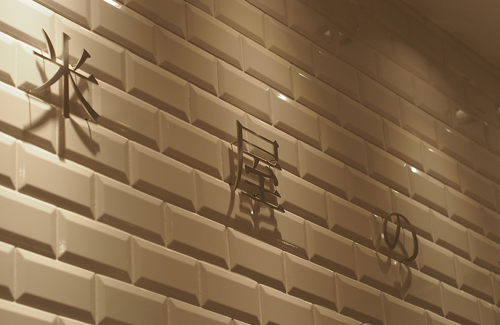 Rを生かした優しい印象のショーケースを含むカウンターを、磁器タイルの壁でコントラストをつけその優しさをより引き立たせるようなデザインとした。