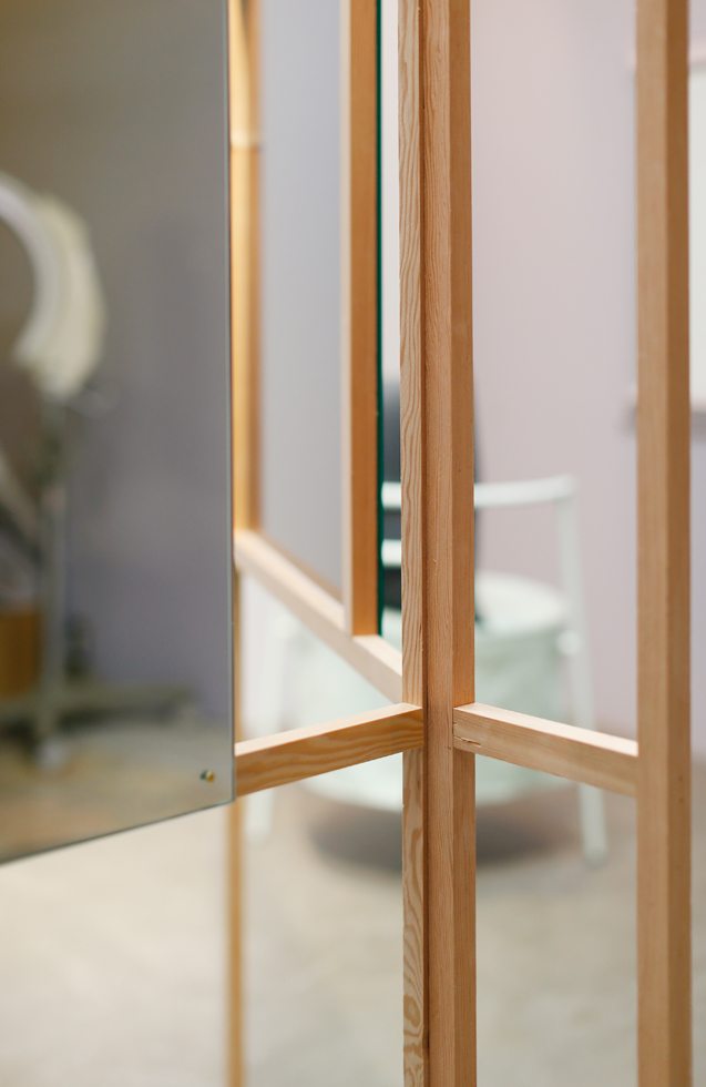 美容院glassさんの移転計画。移転にともなっての店舗設計、ロゴデザインの刷新、名刺やショップカード等のグラフィックデザイン、椅子のデザイン等トータルでデザインさせていただいた。 もともとある種、空気感をまとった空間だったのでそれ以前の空間の記憶をコンセプトにデザイン。既存の空間の中にヒアリングしながら出てきた必要最低限の機能を持った「装置」をポン、ポン、とハコの中に配置していくというイメージで空間構成。これまでのにおいを残しつつ、「装置」を配置する事で全く違うイロに染まる、そんな空間。同様のコンセプトでロゴや各グラフィックツールも展開。