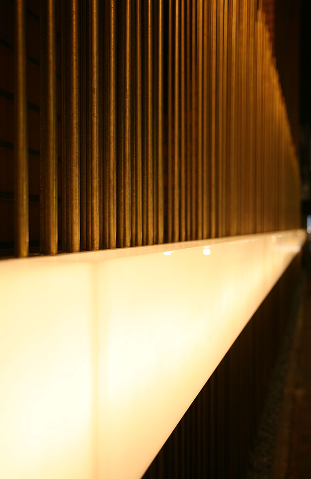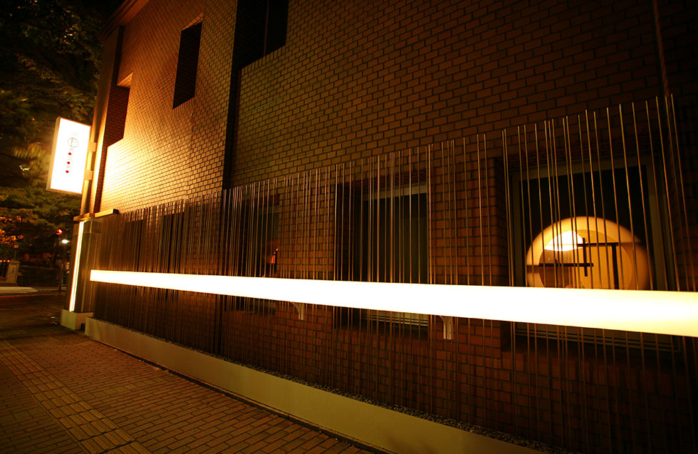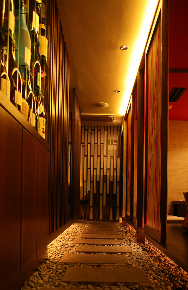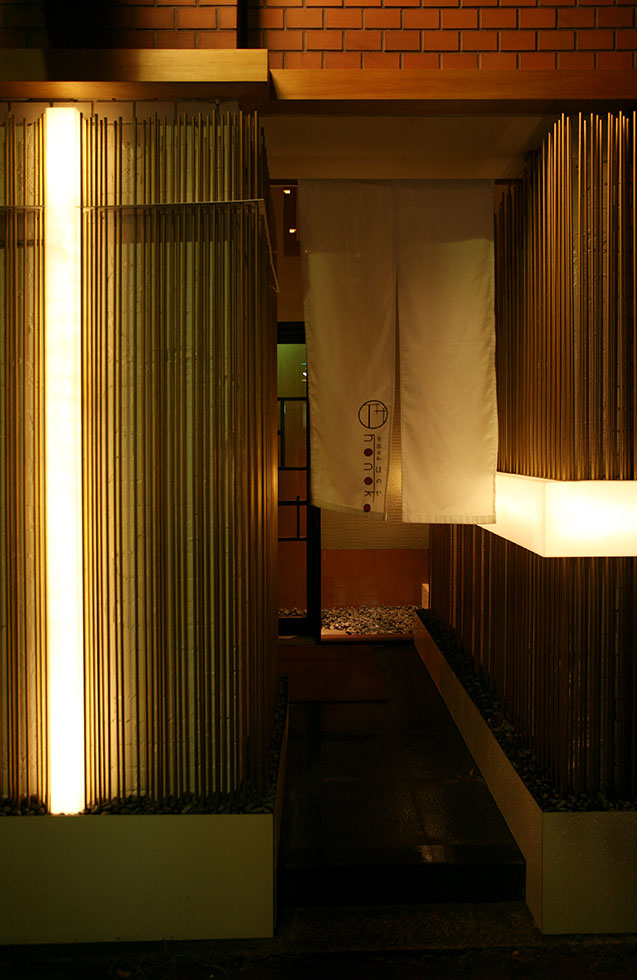 岡山市田町に「食楽日和ほのか」がオープン。店舗設計、デザイン全般を担当。空間全体に間接照明を使い、落ちついた雰囲気を演出している。店のキーカラーである朱色を部分的にさして使うことで空間に広がりを持たせている。 また、LEDを光源に用いた特注デザインの照明器具や、ナラ無垢材を用いたオリジナルの別注椅子/テーブルセット、染色した糸をランダムに張巡らせたパーテション、別注の洗面ボウル、メニューボックス等々に加え、ロゴ、名刺、メニュー、フライヤー、WEB等にいたるまでトータルでのデザインを施している。