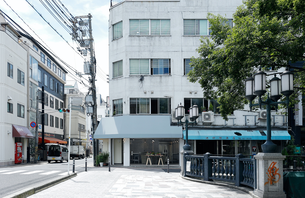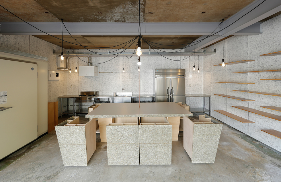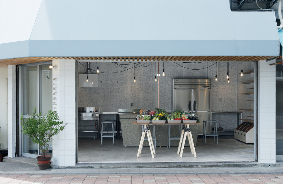 池田促成青果ラボさまの空間のリニューアルデザインを担当させていただいた。 岡山駅前の街中をゆるやかに流れる西側沿いで代々八百屋さんをされている池田促成青果さま。 これからの八百屋さんのあり方を模索、実践する空間を実現したいということで今回の計画がスタートした。 街に対してひらかれているという八百屋さんのあり方を路襲つつ、街の中にすぽんと出現した「隙間」みたいな空間が実現したいなぁと思いながら、色んな食に関するワークショップができる大きなカタマリのようなカウンターを中心に据えて空間の構成は出来るだけスッキリとミニマムに。 そんなに広い空間じゃない分、テクスチャーや死角を意識してデザインすることでその中や外から見える景色は距離感や角度で変化をつけた。