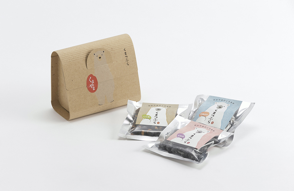 岡山県赤磐市にある熊山農産株式会社さまが作るお菓子「くまつぶら」の、3個入りセット箱・フライヤーをデザイン。 「食と健康」をベースに丁寧なものづくりを続ける熊山農産さまは、「くまつぶら」の食材・味・量すべてにこだわり、たくさんの人に健康を届けたいという強い想いのもと、岡山の熊山から全国に向けて展開を進められている。 今回パッケージ箱とフライヤーを担当させていただくにあたり、既存の「しろくま」のデザインを活かしつつ、熊山らしさをさらに分かりやすく感じるようなデザインを心がけた。「土っぽさ」「人の温度」「健康への想い」そんな素朴なイメージを寄せ集め、それが目に見える一つの形になればと製作。 箱のモチーフは豆、フライヤーは小さな絵本をイメージしている。「くまつぶら」の優しさ、強さ、温かさが伝われば嬉しい。