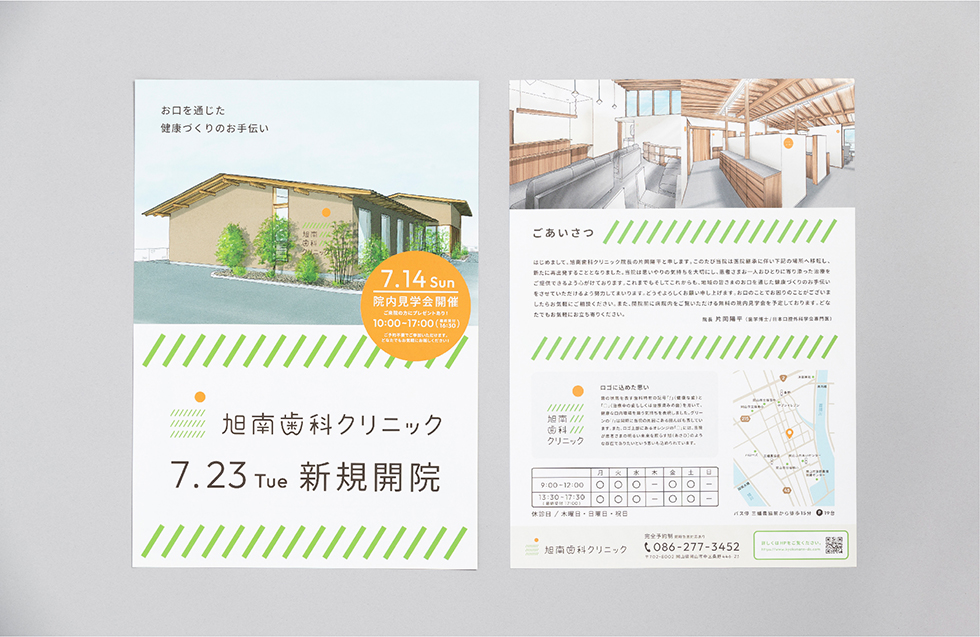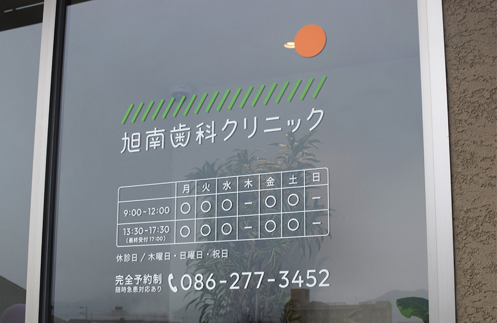 岡山市中区桑野で新規開院の歯科クリニック「旭南歯科クリニック」のロゴ、サイン、チラシのデザインを担当した。