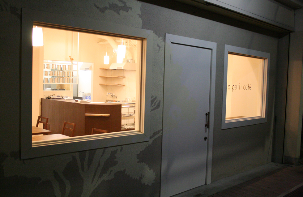 カフェを併設したフランス焼き菓子店の店舗設計。榎のシルエットを壁面に用いることにより、温もりのあるデザインにした。