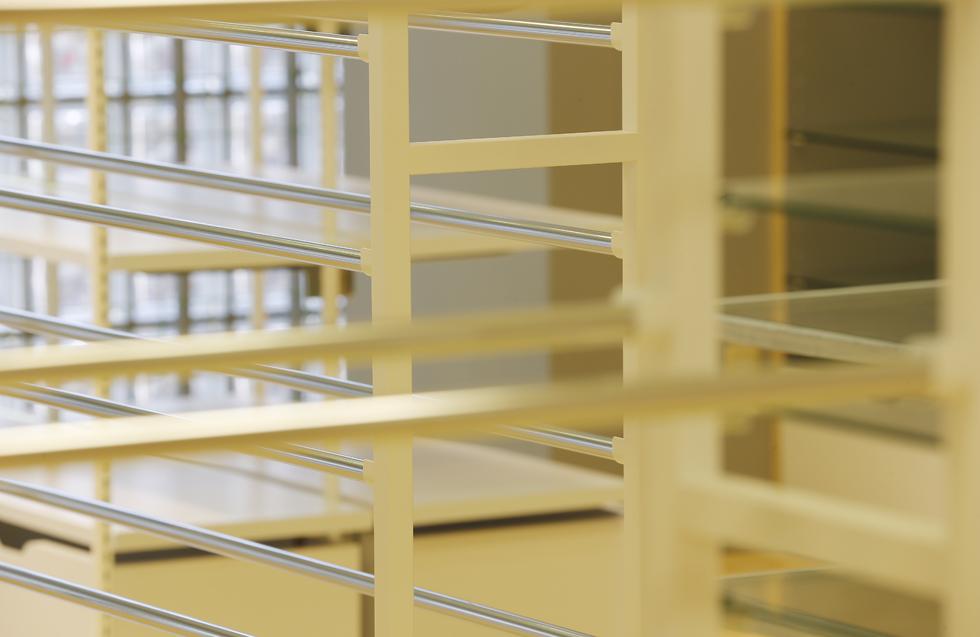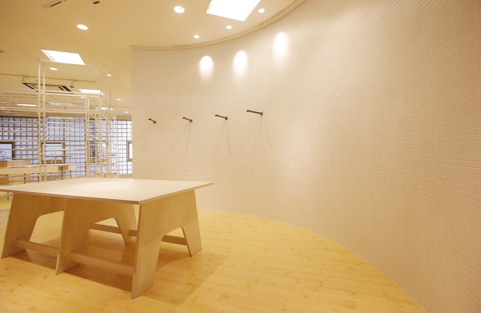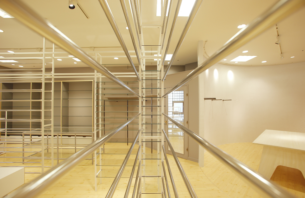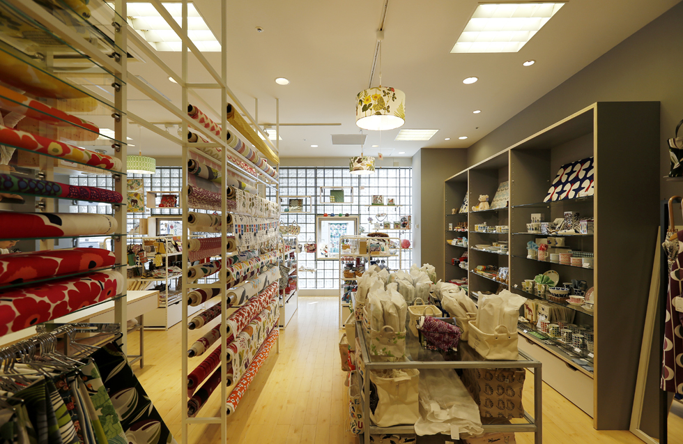 姫路を拠点に全国でショップ展開をされている北欧ファブリック、雑貨のショップ「ルネ・デュー」さんの岡山への初出店新装計画の店舗設計を担当。 ショップのアイデンティティでもあるファブリックを圧倒的なボリュームで店舗の前面にアピールするようにロール上のファブリックがそのままサインになるようなタワー什器を製作し、それを中心に店舗レイアウトを構成。 洗練された多様なパターンの生地の存在感やグラフィカルな色彩を邪魔しないよう、店内の仕上げはグレー、白、パイン無垢材などを中心に構成。