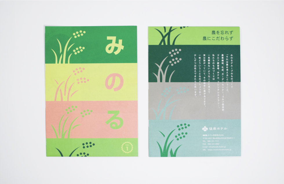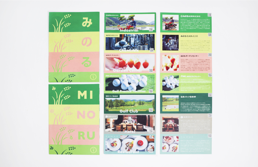 みのる産業株式会社様の多岐にわたる事業をエピソードや事例を中心に少しずつ紹介するリーフレット。
