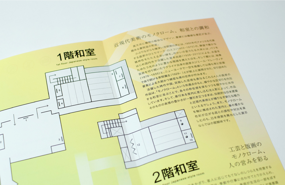 また、パンフレットは外と内でイメージの差をつけることで対比を表現し、