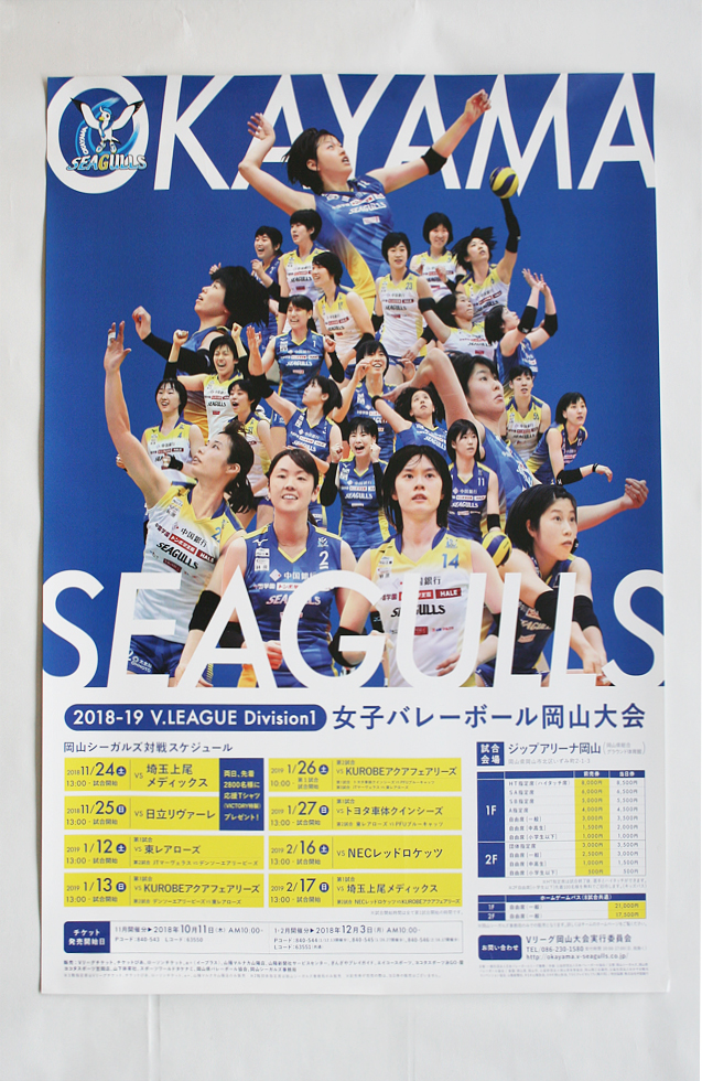 岡山の女子バレーボールクラブチーム、「岡山シーガルズ」のポスター、