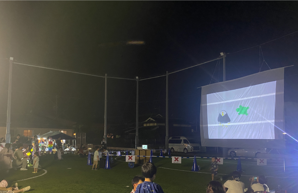実際に夏祭りで上映した際には、映像の中に出てくる五感のワードを、子どもたちが大きな声で読み上げてくれた。