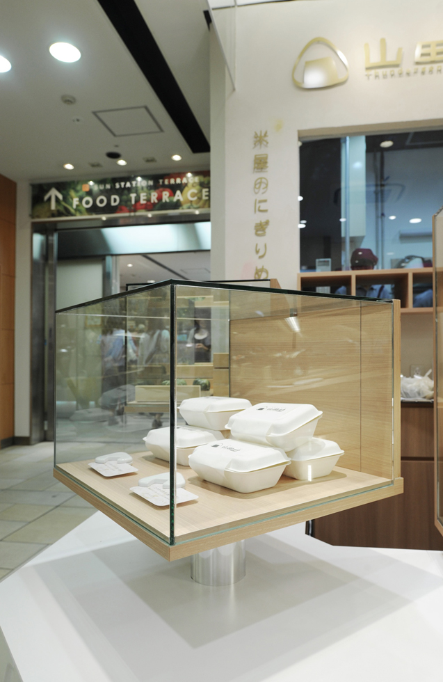米屋さんが展開するおにぎり屋さんの店舗設計を担当。5坪という極小のスペースに確かな「お米」を確かな「炊き方」で、1つ1つ「手で握り」を提供するというコンセプト。おにぎりの中にふんだんに入った具がうっすら透けているというイメージで上部にRで切り取った白貴重の壁に数色の顔料をうっすら練り込み、特注で製作したおにぎりタイルをショーケースのポイントに製作。プライスカードや各種ポップなどのグラフィックデザインも担当。ランチボックスのパッケージなども同時にデザイン進行中。
